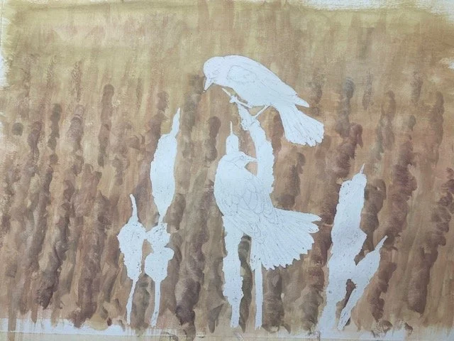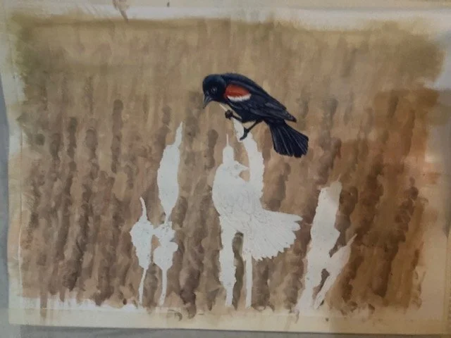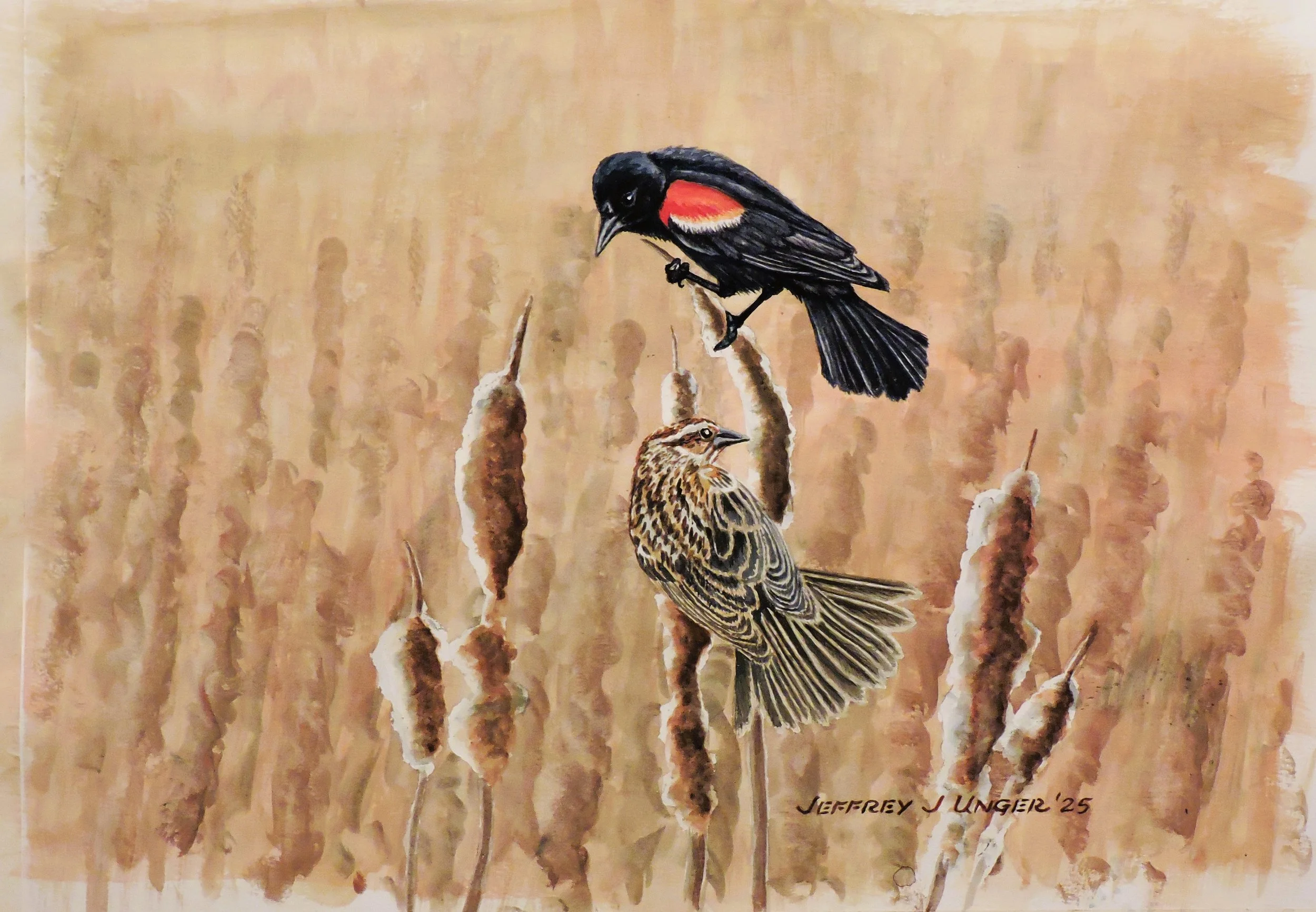 Christmas 2025 watercolor for the family of Redwing blackbirds